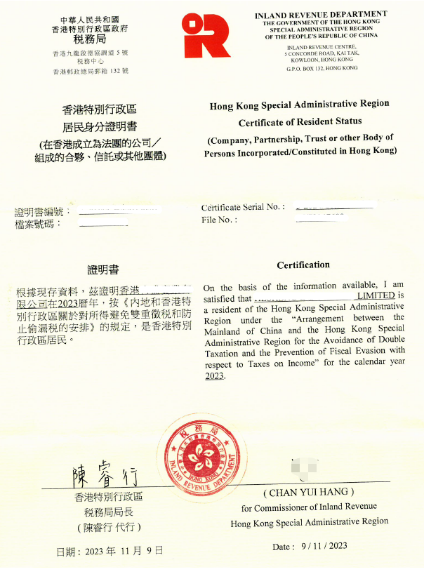 RICHFUL瑞豐亦可以協(xié)助申請香港稅務(wù)居民身分證明書以及中港稅收協(xié)定優(yōu)惠的申請服務(wù):