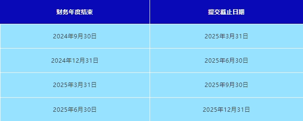 在財務(wù)年度結(jié)束后6個月內(nèi)提交。大型實體和非大型非控股實體必須準(zhǔn)備年度財務(wù)總結(jié),并保存在其注冊辦公室。常見截止日期: