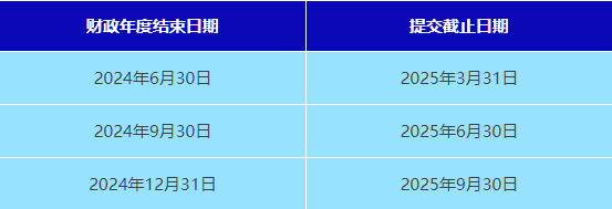 年度申報(bào)表 - 財(cái)政年度結(jié)束后9個(gè)月