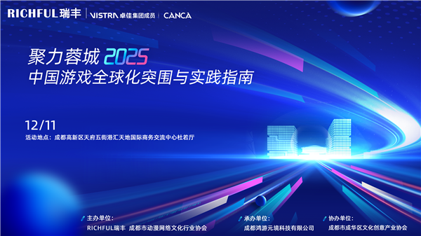 2025 年 12 月 11 日下午,“聚力蓉城 2025—— 中國游戲全球化突圍與實踐指南” 活動在成都高新區(qū)天府五街港匯天地國際商務(wù)交流中心杜若廳盛大舉行。本次活動由 RICHFUL 瑞豐與成都動漫網(wǎng)絡(luò)文化行業(yè)協(xié)會聯(lián)合主辦,旨在助力游戲企業(yè)在全球化浪潮下,快速且穩(wěn)健地拓展海外市場,有效應(yīng)對政策、合規(guī)及市場等多方面挑戰(zhàn)。